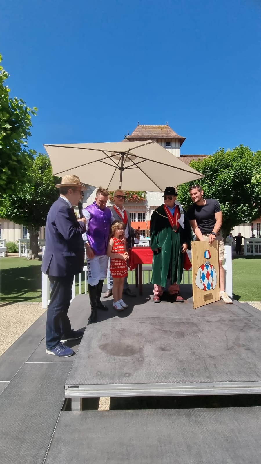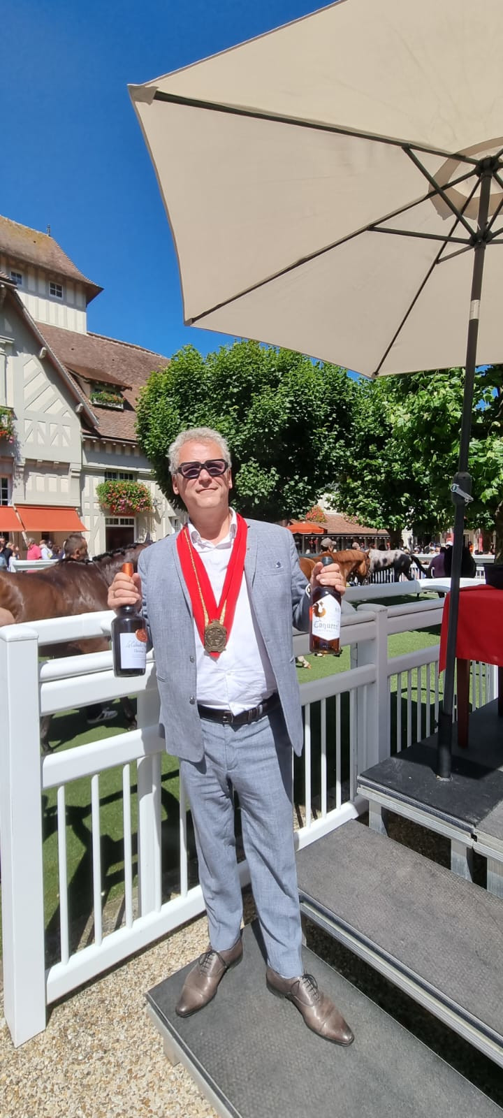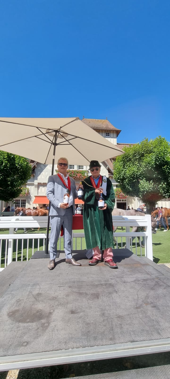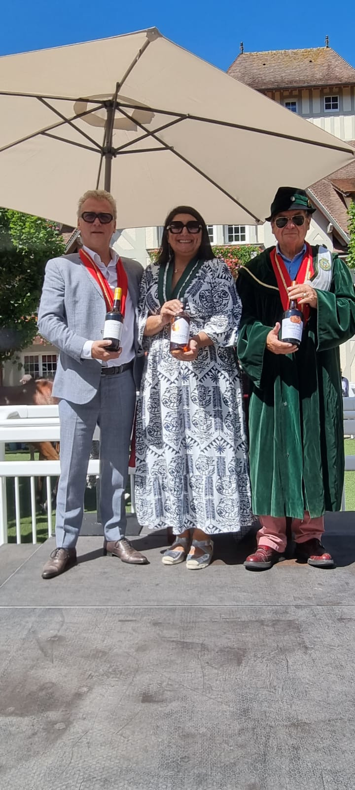 À cette occasion, le Grand Ordre du Trou Normand a tenu à remercier les vainqueurs en leur offrant des symboles de l’excellence normande. Le jockey, le propriétaire et l’entraîneur du cheval gagnant se sont chacun vu remettre une bouteille de Calvados Coquerelle, une bouteille de la Maison Dupont, et une bouteille de la Maison Drouin, ambassadeurs réputés du savoir-faire local.